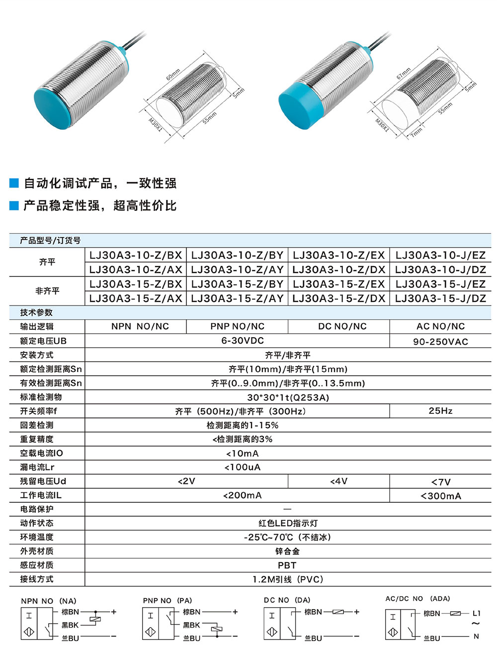 Position:Home > Product > proximity switch > LJ cylindrical economy series LJ30A