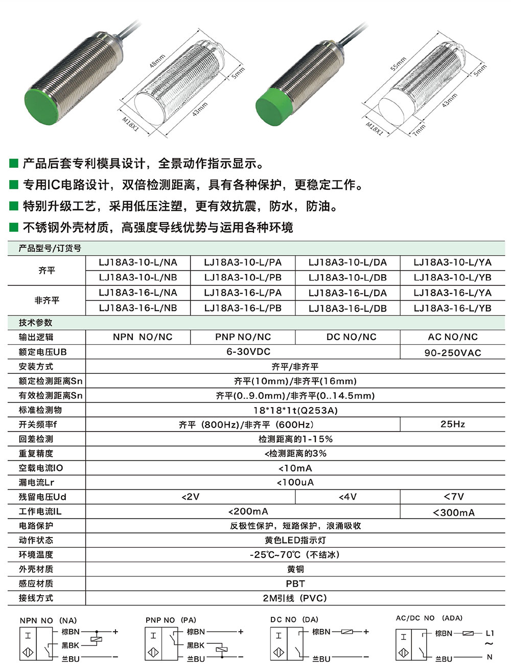 Position:Home > Product > proximity switch > LJ cylinder double distance series LJ18A3